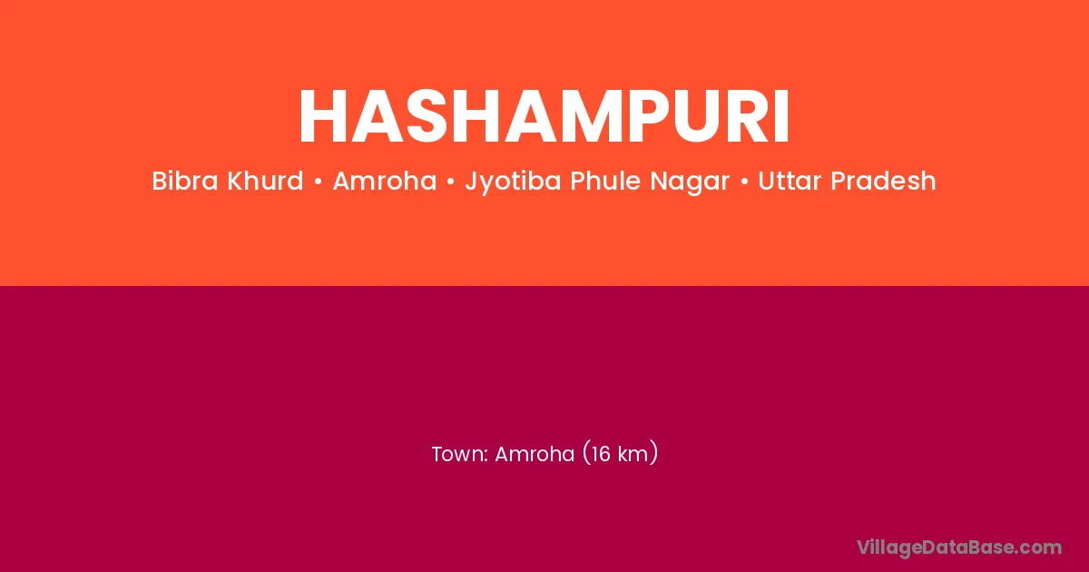 Amroha (16 km) is the nearest town to Hashampuri village for major economic activities and is located approximately 16 km away.