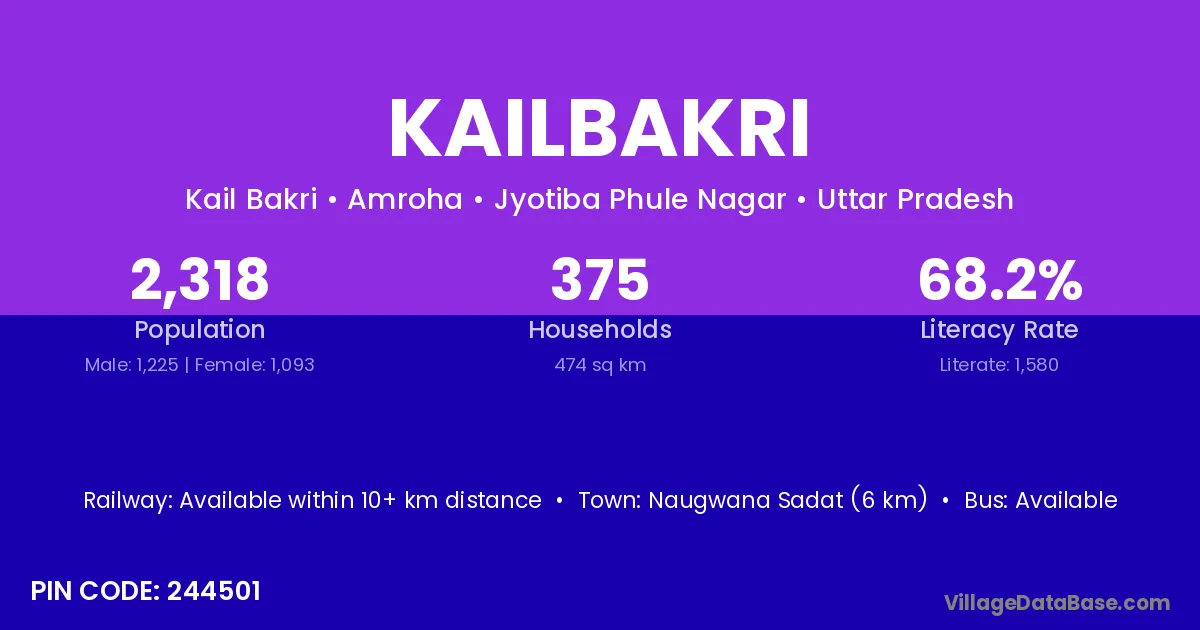 Naugwana Sadat (6 km) is the nearest town to Kailbakri village for major economic activities and is located approximately 6 km away.