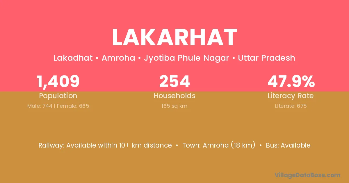 Amroha (18 km) is the nearest town to Lakarhat village for major economic activities and is located approximately 18 km away.