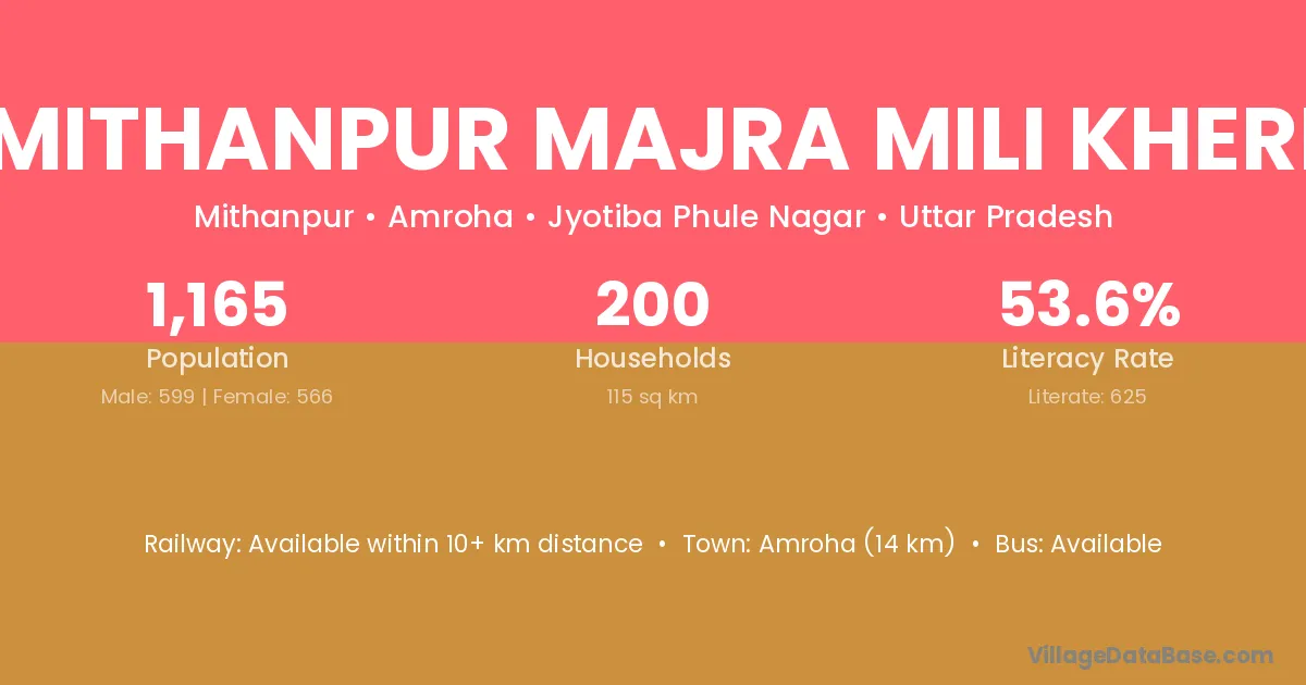 Mithanpur Majra Mili Kheri village is located in the Amroha Tehsil of the Jyotiba Phule Nagar district in Uttar Pradesh .