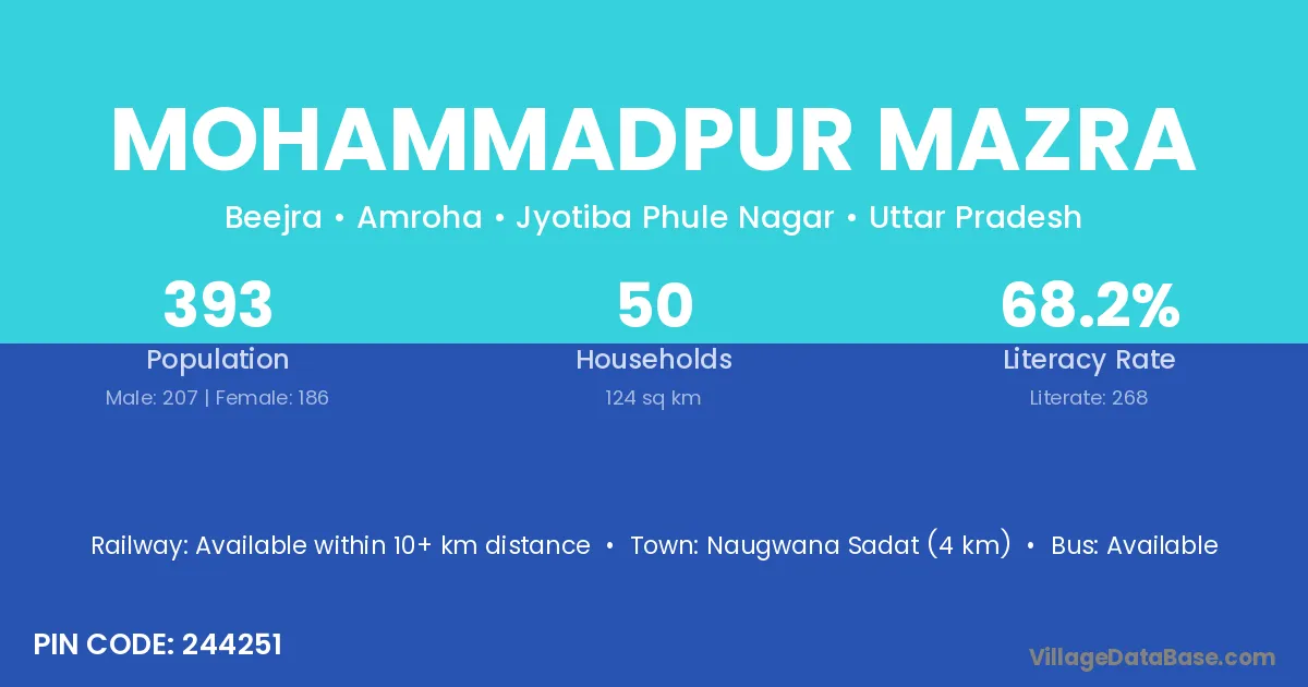 Mohammadpur Mazra village is located in the Amroha Tehsil of the Jyotiba Phule Nagar district in Uttar Pradesh .