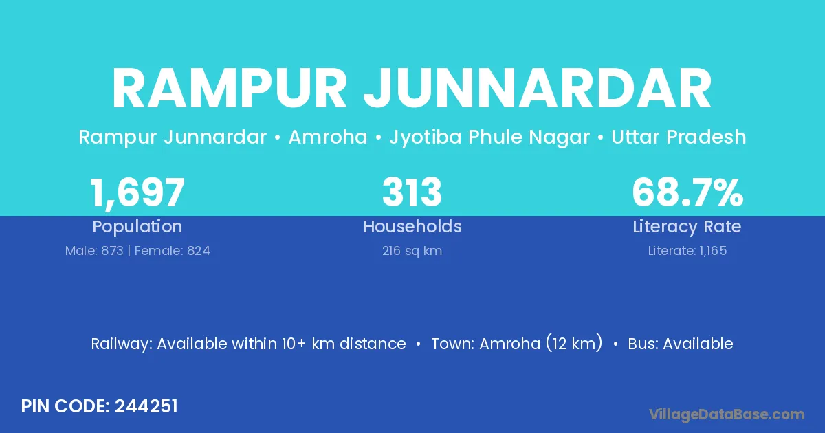 Amroha (12 km) is the nearest town to Rampur Junnardar village for major economic activities and is located approximately 12 km away.