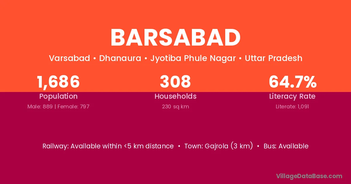 Gajrola (3 km) is the nearest town to Barsabad village for major economic activities and is located approximately 3 km away.