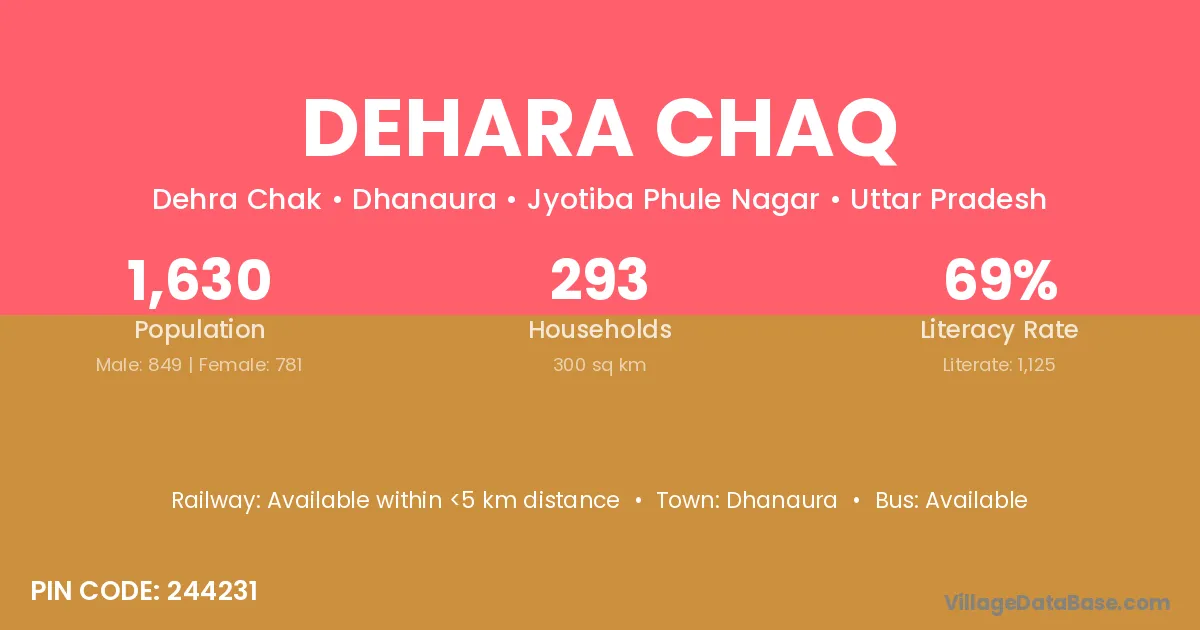 Dhanaura is the nearest town to Dehara Chaq village for major economic activities