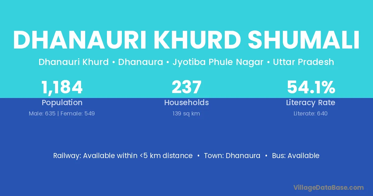 Dhanauri Khurd Shumali village has a total population of 1,184 people, of which 635 are males and 549 are females.