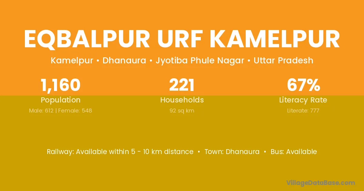 Eqbalpur Urf Kamelpur village has a total population of 1,160 people, of which 612 are males and 548 are females.