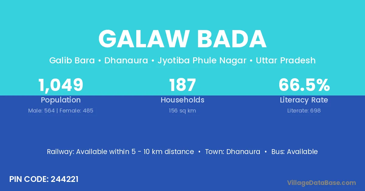 Dhanaura is the nearest town to Galaw Bada village for major economic activities