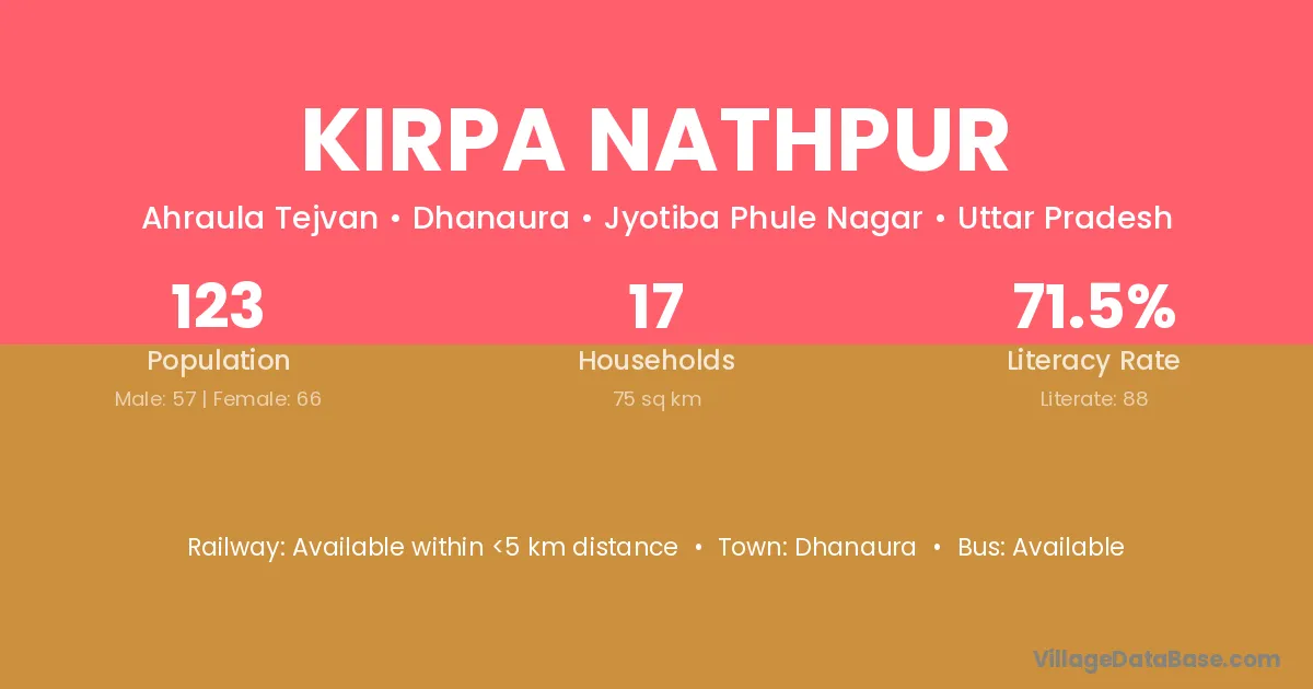 Kirpa Nathpur village has a total population of 123 people, of which 57 are males and 66 are females.
