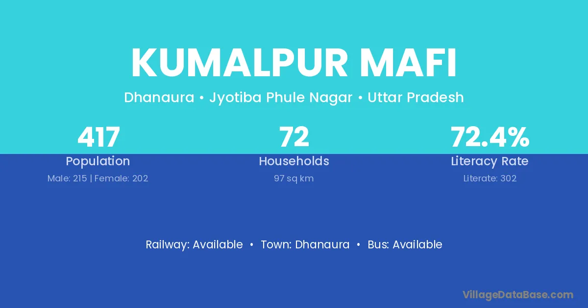 Kumalpur Mafi village has a total population of 417 people, of which 215 are males and 202 are females.