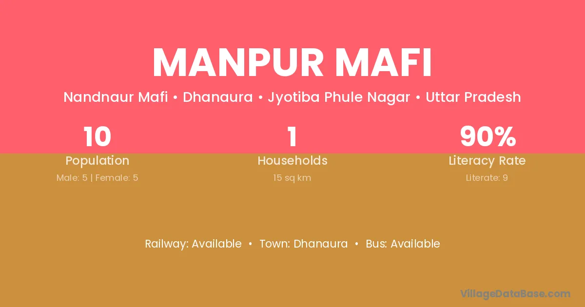 Manpur Mafi village has a total population of 10 people, of which 5 are males and 5 are females.