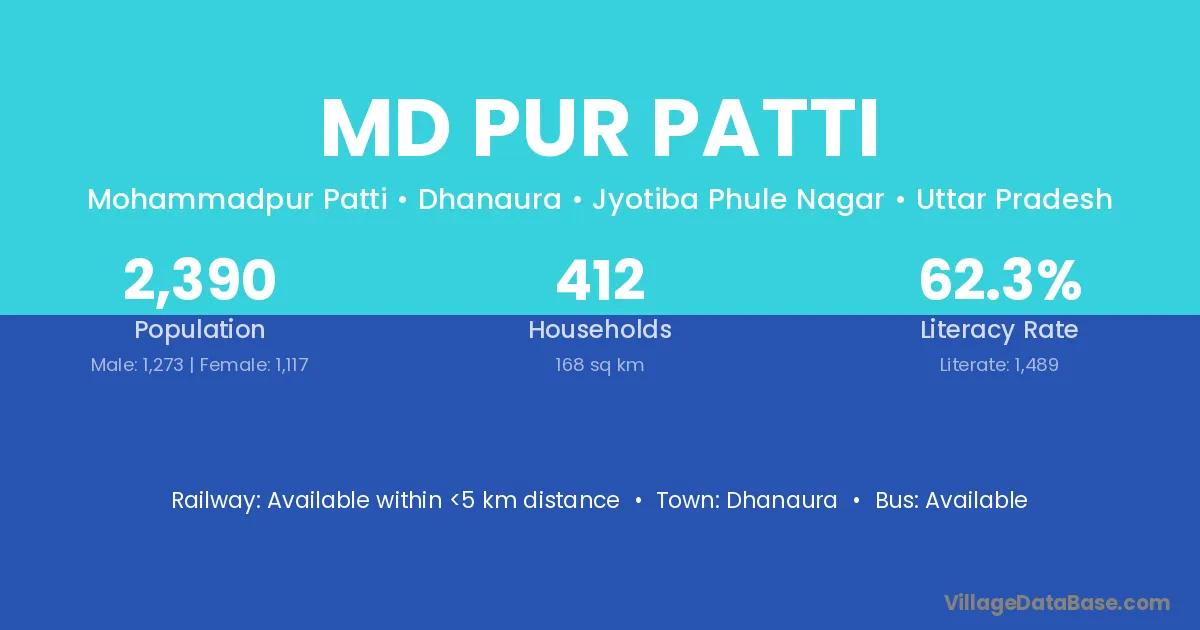 Dhanaura is the nearest town to Md Pur Patti village for major economic activities