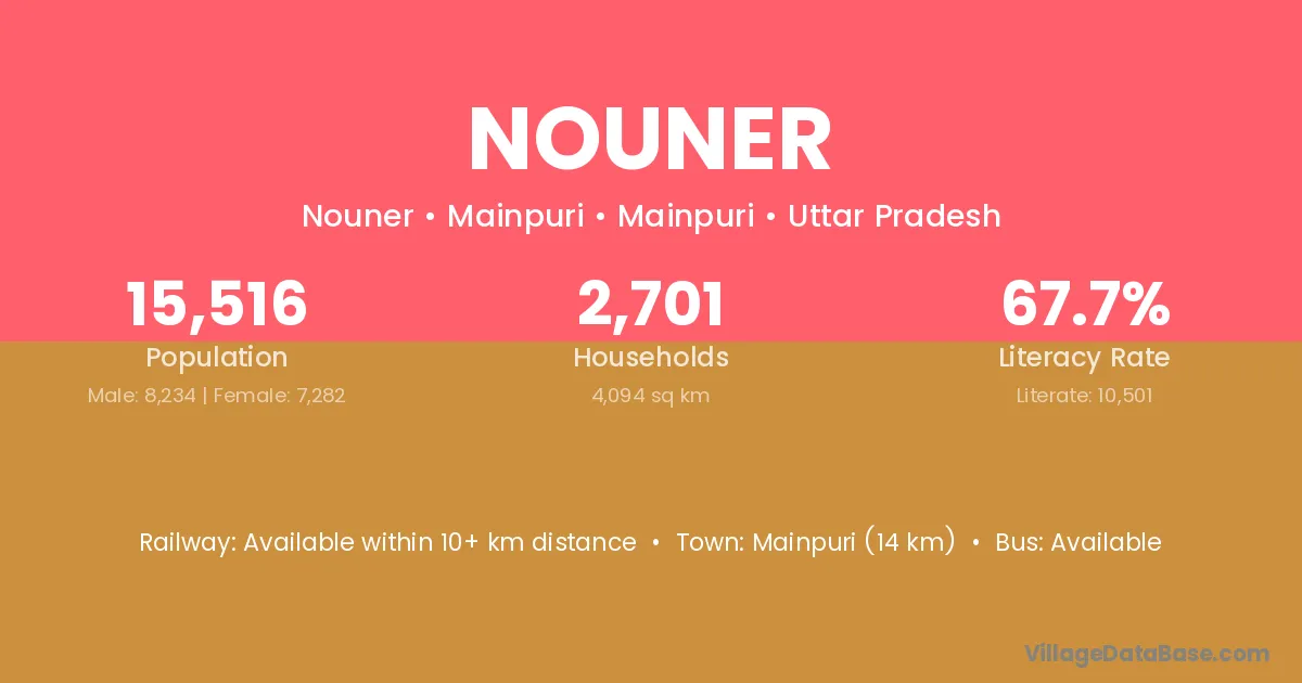 The literacy rate of Nouner village is 51.49%. Male literacy stands at 63.00% and female literacy at 38.87%.