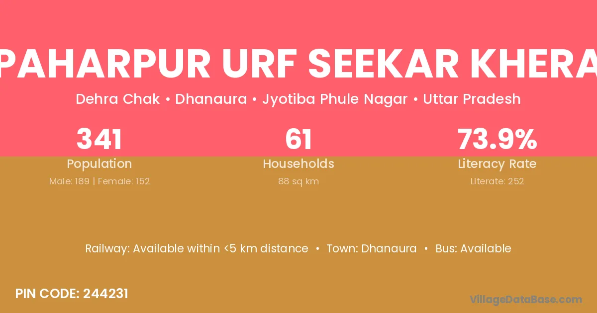Paharpur Urf Seekar Khera village has a total population of 341 people, of which 189 are males and 152 are females.