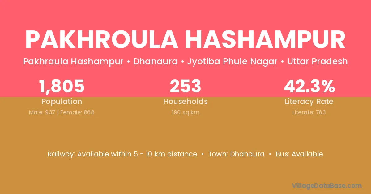 Pakhroula Hashampur village has a total population of 1,805 people, of which 937 are males and 868 are females.
