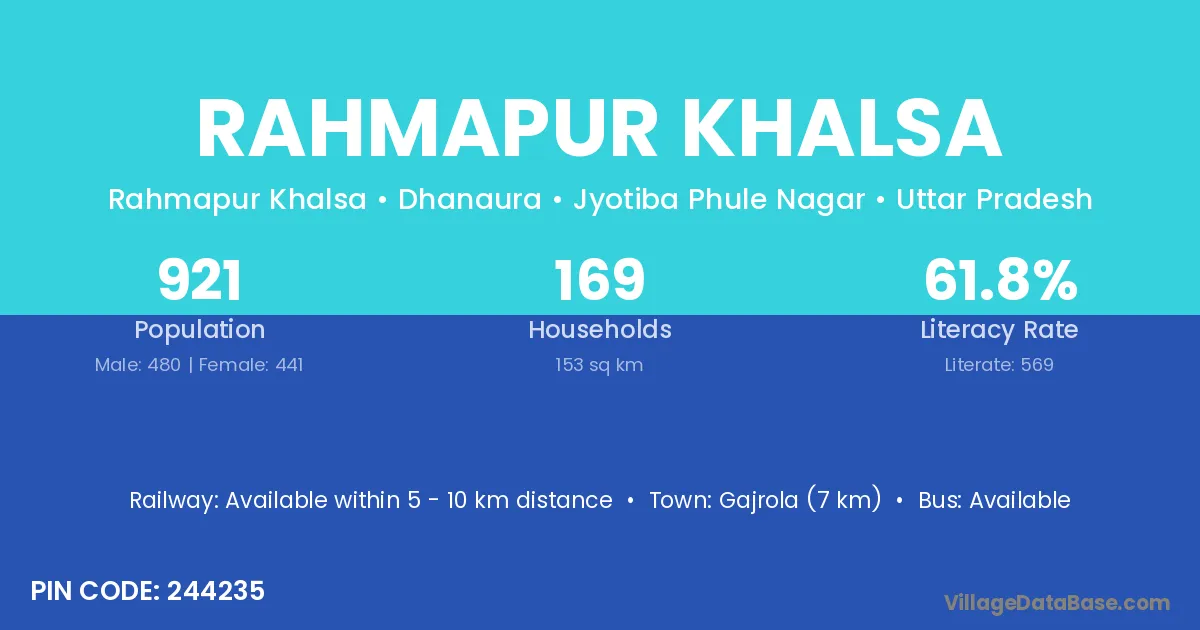 Gajrola (7 km) is the nearest town to Rahmapur Khalsa village for major economic activities and is located approximately 7 km away.