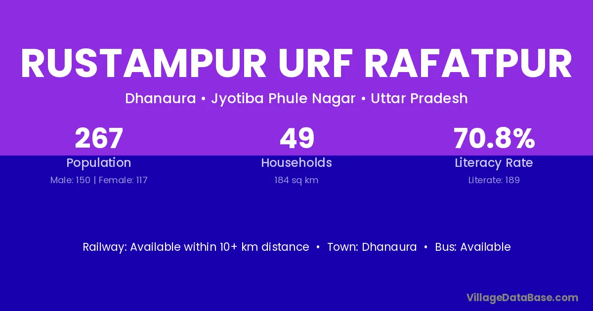 Rustampur Urf Rafatpur village has a total population of 267 people, of which 150 are males and 117 are females.