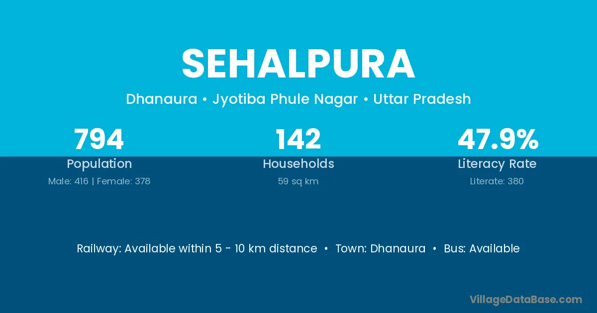 Dhanaura is the nearest town to Sehalpura village for major economic activities