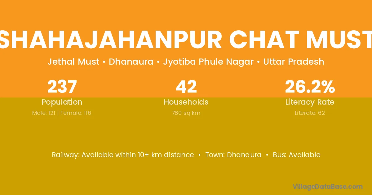Shahajahanpur Chat Must village has a total population of 237 people, of which 121 are males and 116 are females.