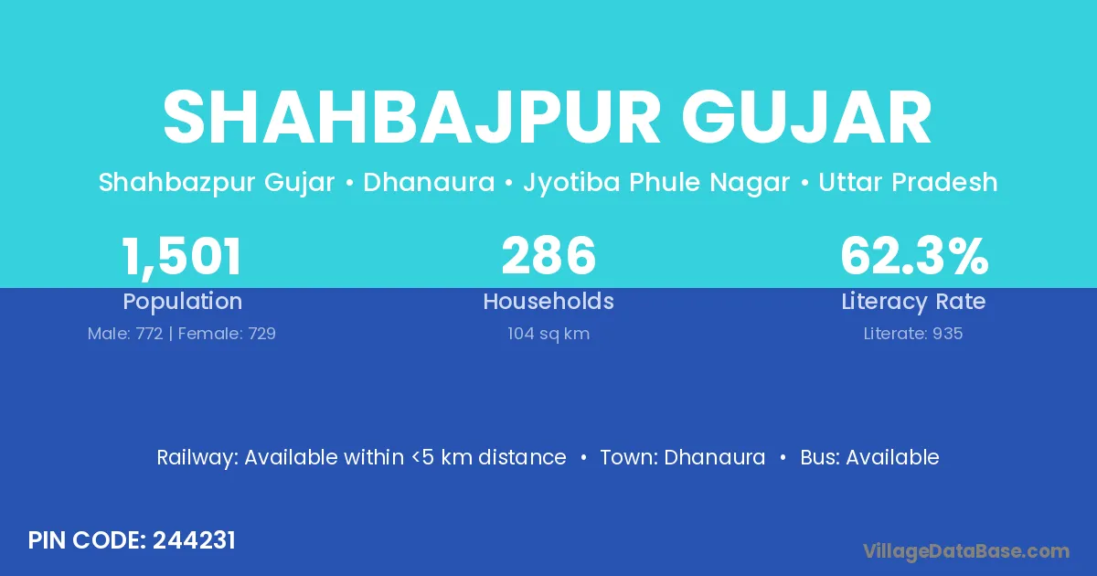 Shahbajpur Gujar village has a total population of 1,501 people, of which 772 are males and 729 are females.