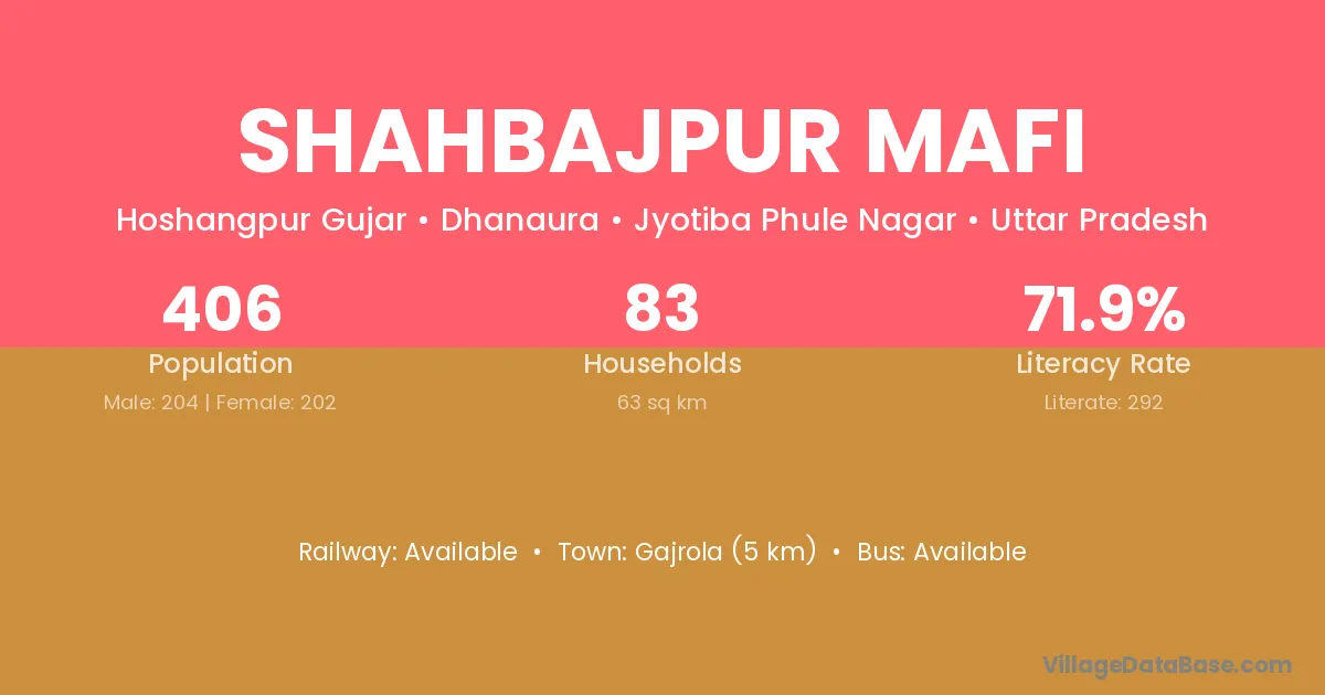 Shahbajpur Mafi village has a total population of 406 people, of which 204 are males and 202 are females.