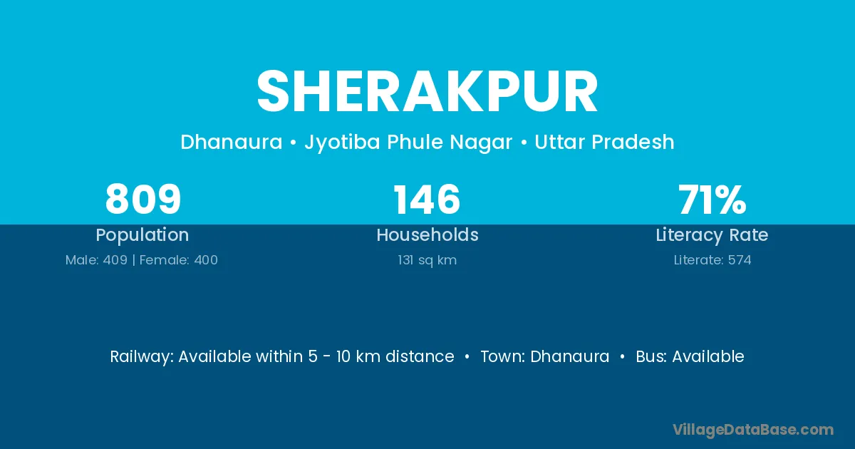 Sherakpur village has a total population of 809 people, of which 409 are males and 400 are females.
