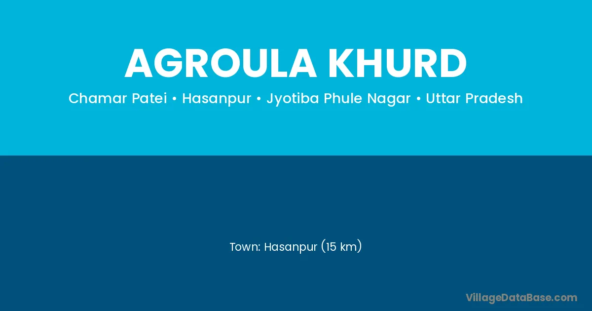Hasanpur (15 km) is the nearest town to Agroula Khurd village for major economic activities and is located approximately 15 km away.