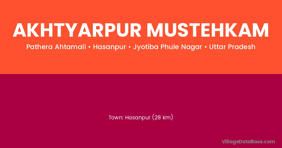 Hasanpur (28 km) is the nearest town to Akhtyarpur Mustehkam village for major economic activities and is located approximately 28 km away.