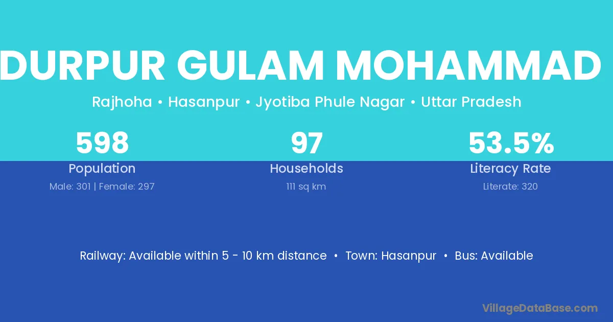 Bahadurpur Gulam Mohammad Khan village has a total population of 598 people, of which 301 are males and 297 are females.