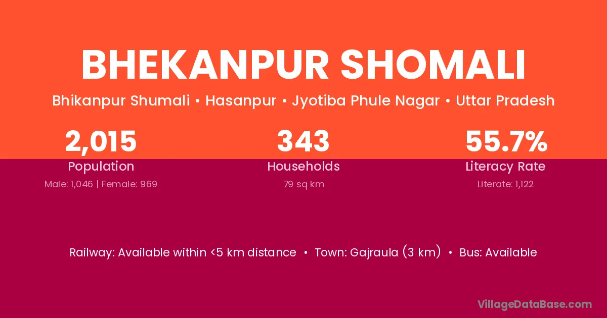 Gajraula (3 km) is the nearest town to Bhekanpur Shomali village for major economic activities and is located approximately 3 km away.