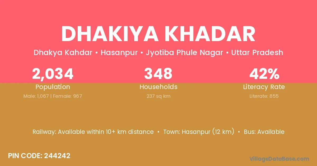 According to Census 2011 information, the village code of Dhakiya Khadar village is 244242.