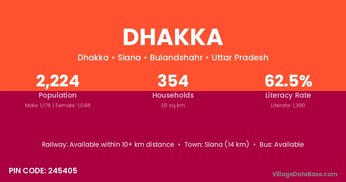 Hasanpur (18 km) is the nearest town to Dhakka village for major economic activities and is located approximately 18 km away.