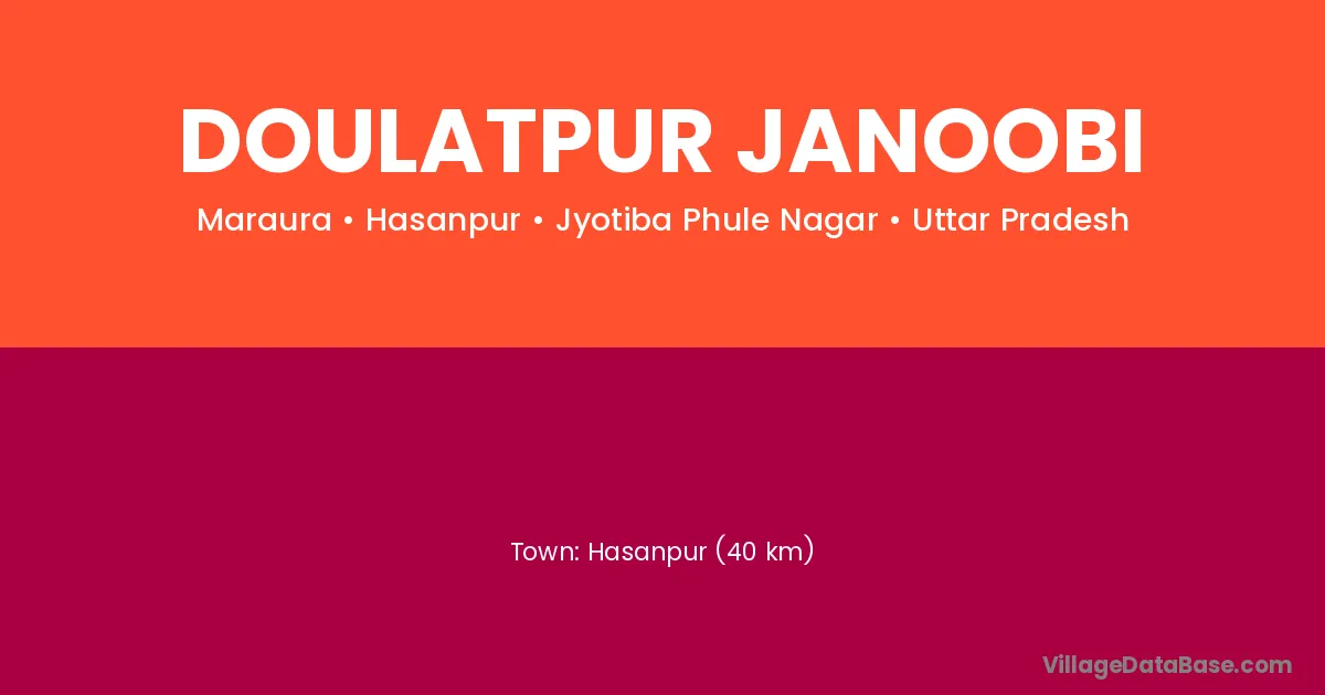 Hasanpur (40 km) is the nearest town to Doulatpur Janoobi village for major economic activities and is located approximately 40 km away.