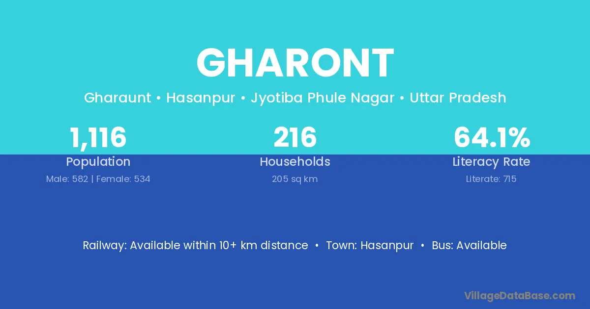 Gharont village has a total population of 1,116 people, of which 582 are males and 534 are females.