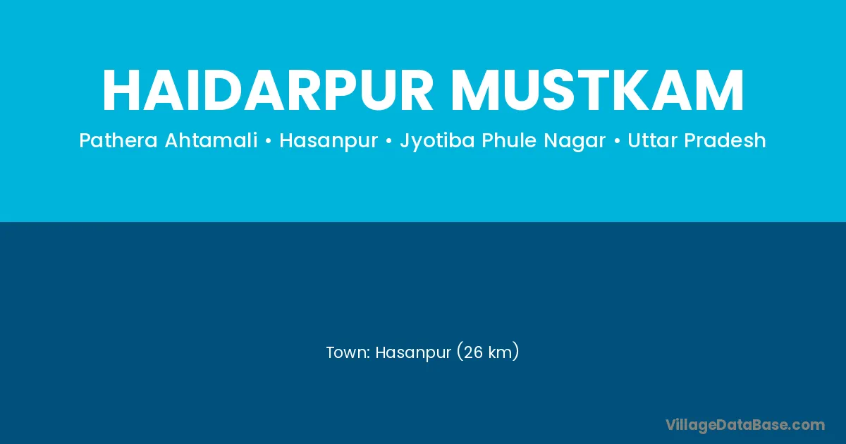 Hasanpur (26 km) is the nearest town to Haidarpur Mustkam village for major economic activities and is located approximately 26 km away.