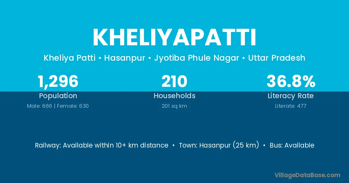 Hasanpur (25 km) is the nearest town to Kheliyapatti village for major economic activities and is located approximately 25 km away.