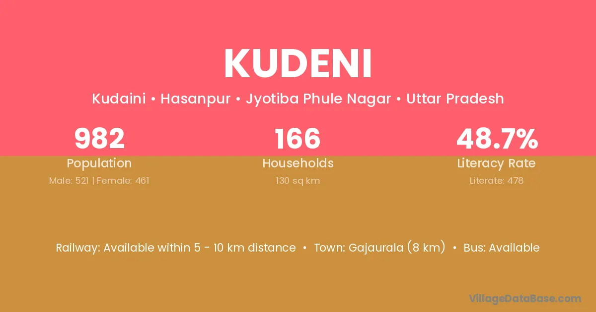 Gajaurala (8 km) is the nearest town to Kudeni village for major economic activities and is located approximately 8 km away.