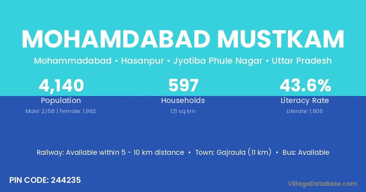 According to Census 2011 information, the village code of Mohamdabad Mustkam village is 244235.