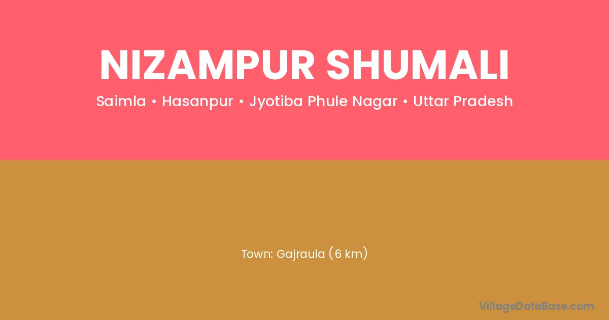 Gajraula (6 km) is the nearest town to Nizampur Shumali village for major economic activities and is located approximately 6 km away.
