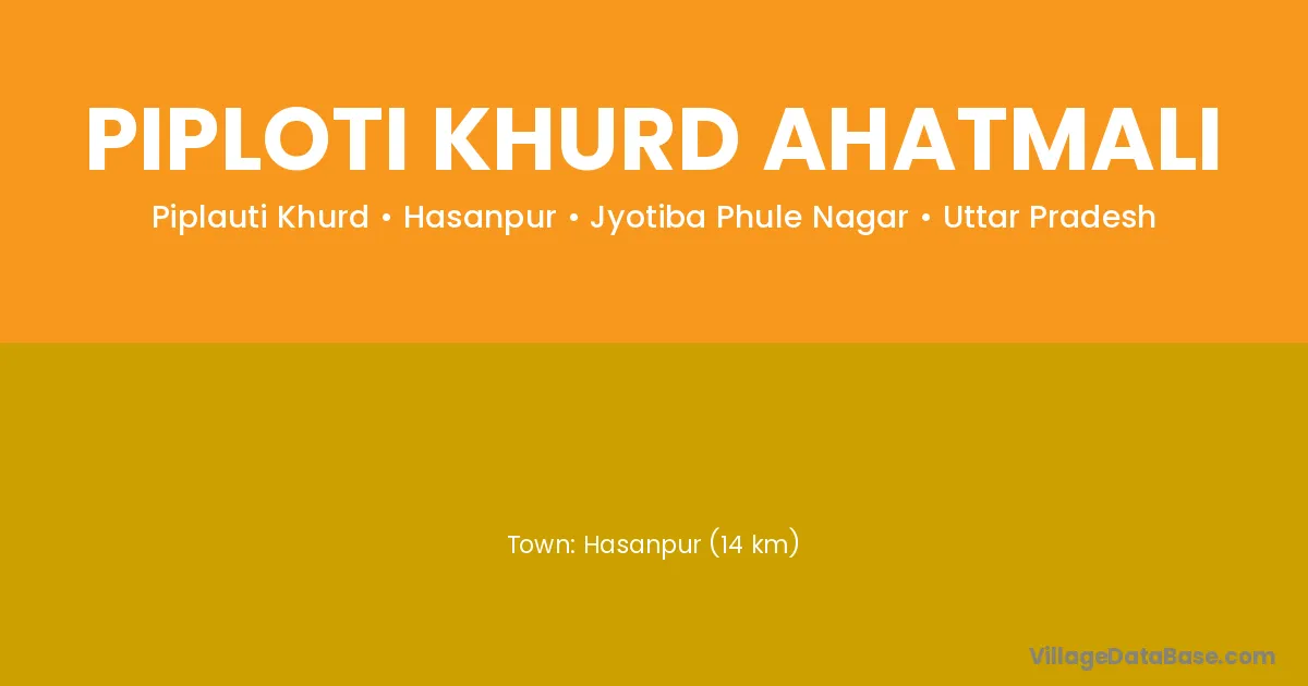 Hasanpur (14 km) is the nearest town to Piploti Khurd Ahatmali village for major economic activities and is located approximately 14 km away.