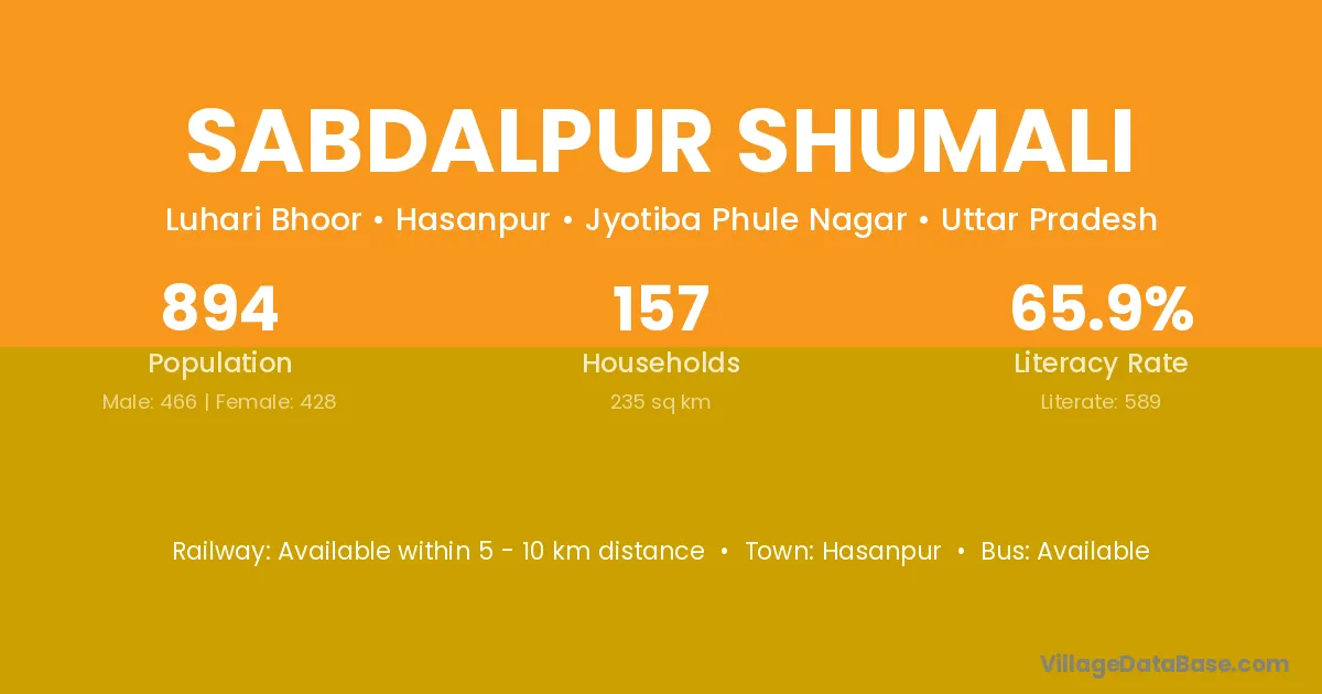 Sabdalpur Shumali village has a total population of 894 people, of which 466 are males and 428 are females.