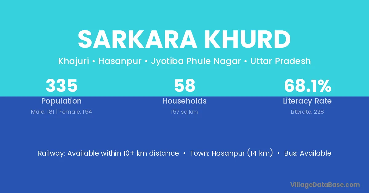 Sarkara Khurd village has a total population of 335 people, of which 181 are males and 154 are females.