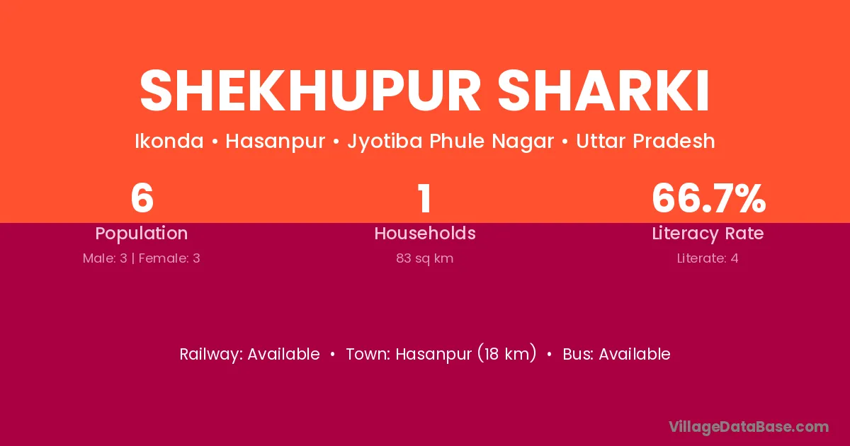 Shekhupur Sharki village has a total population of 6 people, of which 3 are males and 3 are females.