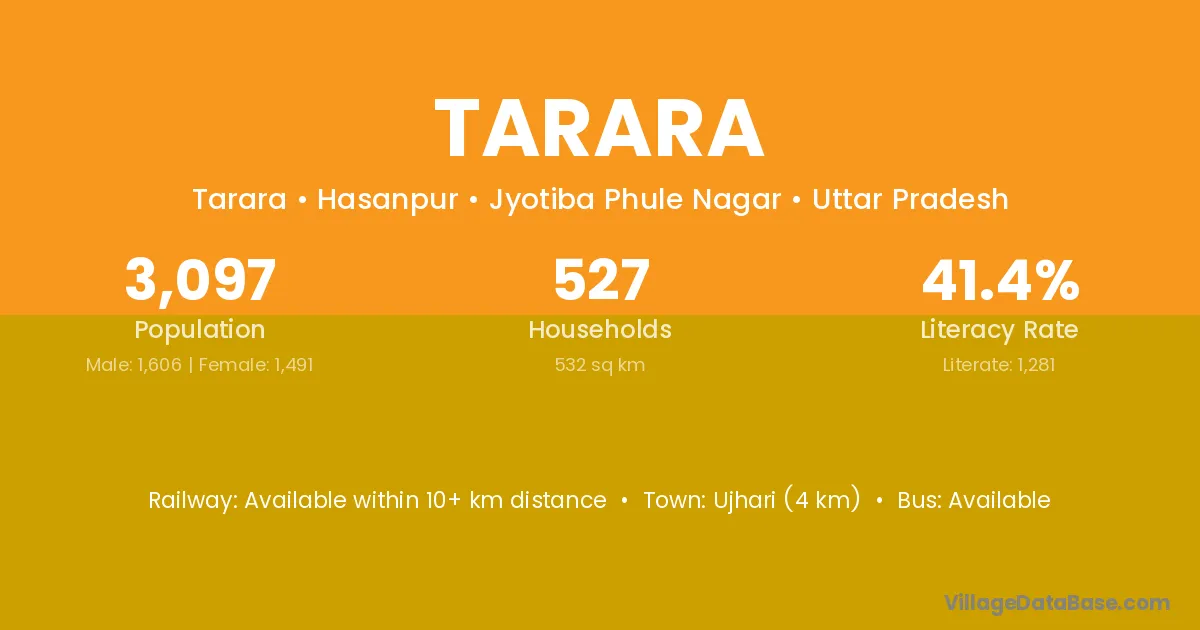 Ujhari (4 km) is the nearest town to Tarara village for major economic activities and is located approximately 4 km away.