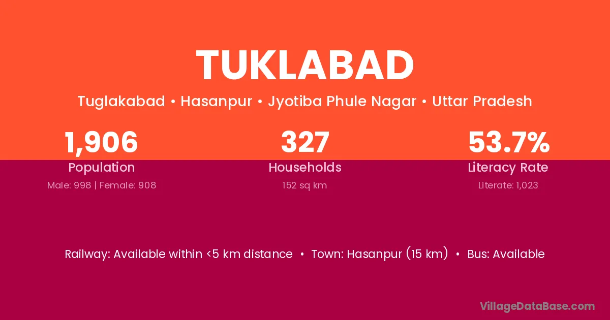 Hasanpur (15 km) is the nearest town to Tuklabad village for major economic activities and is located approximately 15 km away.
