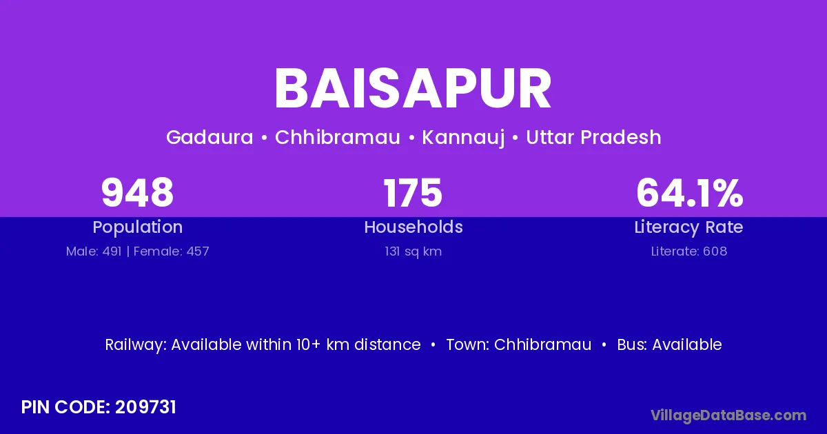 Chhibramau is the nearest town to Baisapur village for major economic activities