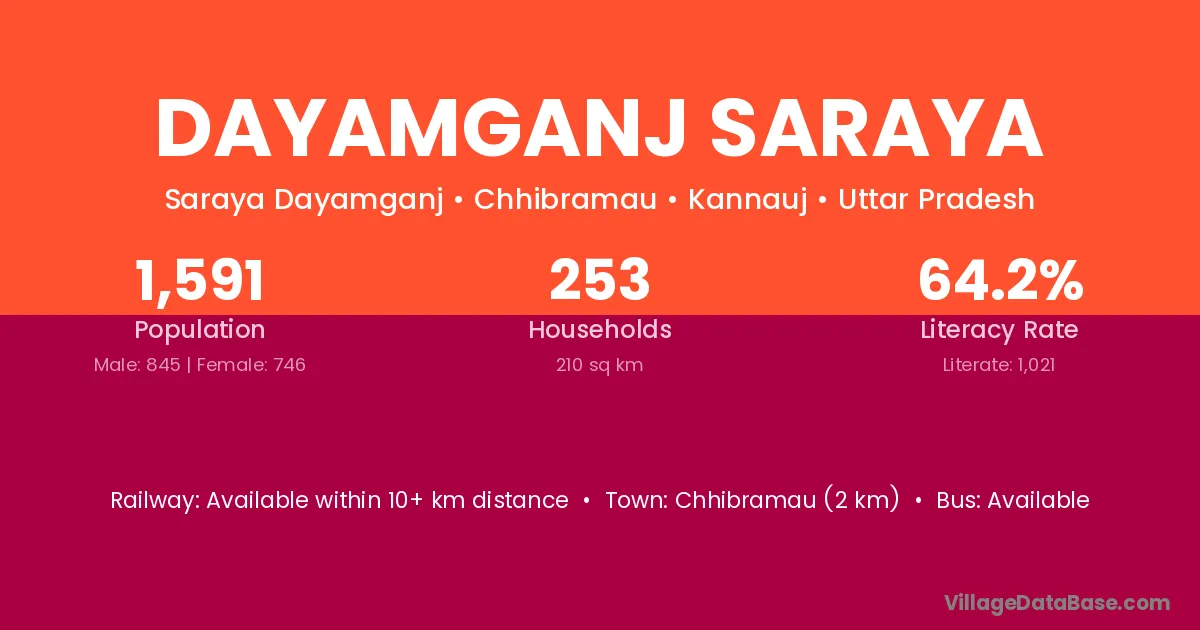 Chhibramau (2 km) is the nearest town to Dayamganj Saraya village for major economic activities and is located approximately 2 km away.