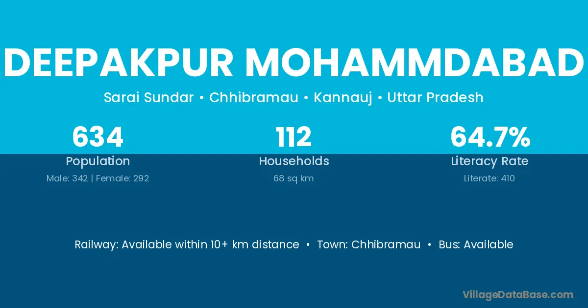 Chhibramau is the nearest town to Deepakpur Mohammdabad village for major economic activities