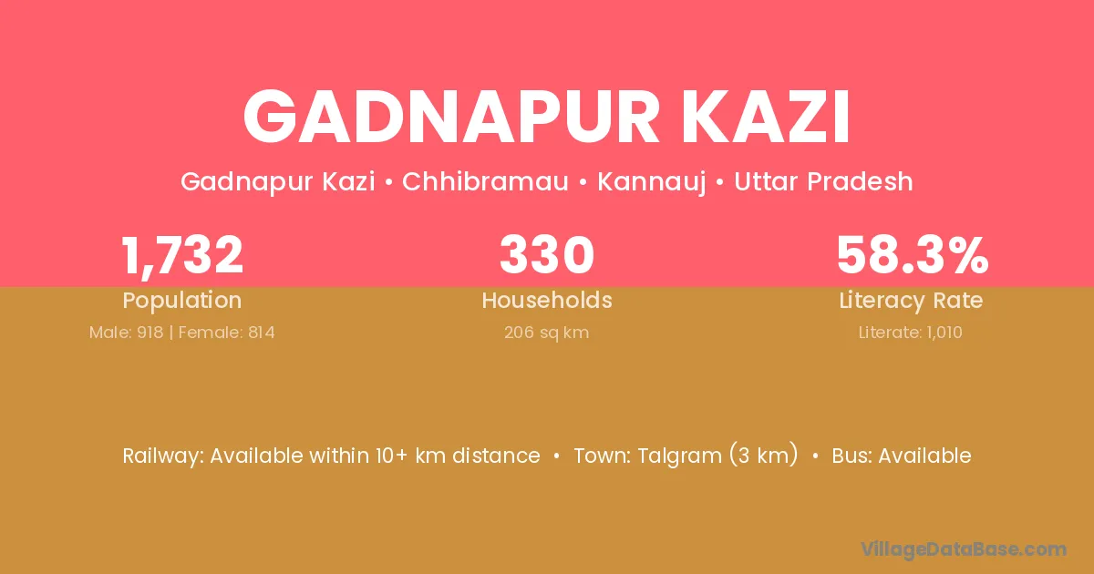Talgram (3 km) is the nearest town to Gadnapur Kazi village for major economic activities and is located approximately 3 km away.