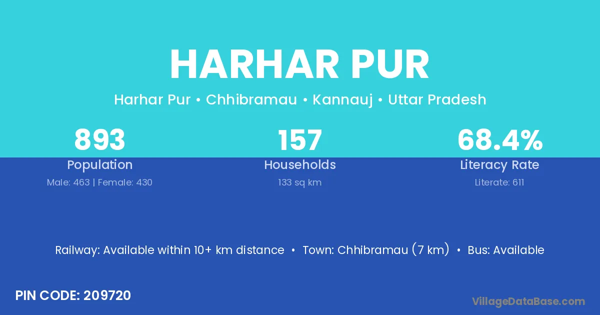 Chhibramau (7 km) is the nearest town to Harhar Pur village for major economic activities and is located approximately 7 km away.