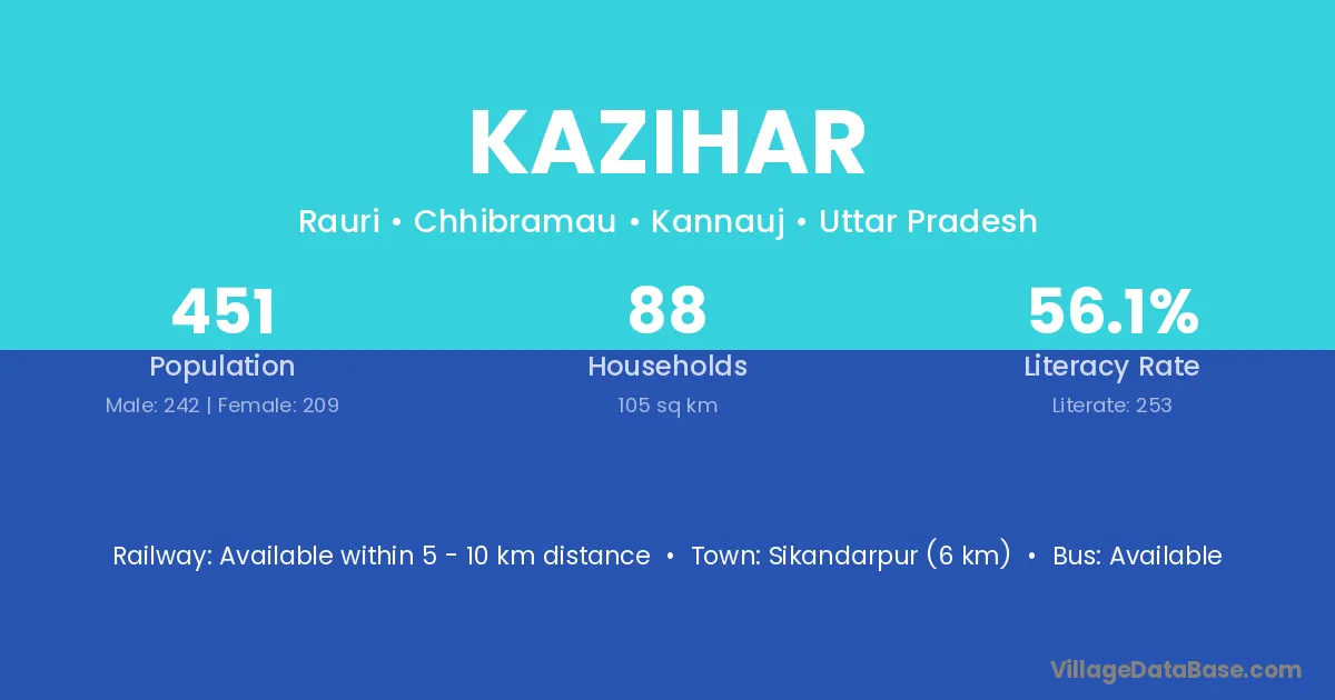Sikandarpur (6 km) is the nearest town to Kazihar village for major economic activities and is located approximately 6 km away.